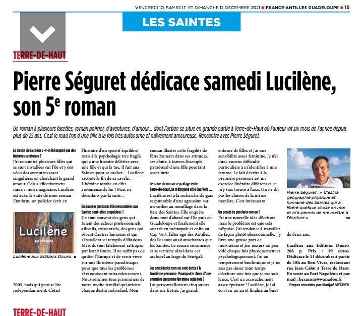 La passion secrète que Lucilène voue à Sylvain est exacerbée par la disparition mystérieuse de ce dernier, suite à une agression commise à bord d’un voilier, dans la baie de Terre-de-Haut (Guadeloupe). Sans hésiter, elle se lance à sa recherche aux Saintes, en Guadeloupe puis en France métropolitaine, persuadée qu’elle parviendra à renouer le fil de leur histoire, quel qu’en soit le prix à payer… « Lucilène » est la chronique d’un amour dévastateur, d’un emportement que rien, pas même des rêves à la puissance prémonitoire, ne parviendra à stopper. Ce roman se veut la suite indépendante d’« État brut » publié il y a douze ans. « Lucilène » est également en lien avec « Dominica » (février 2020).