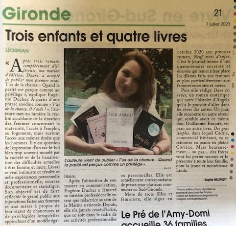 Après l’écriture de deux essais, elle propose aujourd’hui son quatrième roman édité aux Éditions Douro.